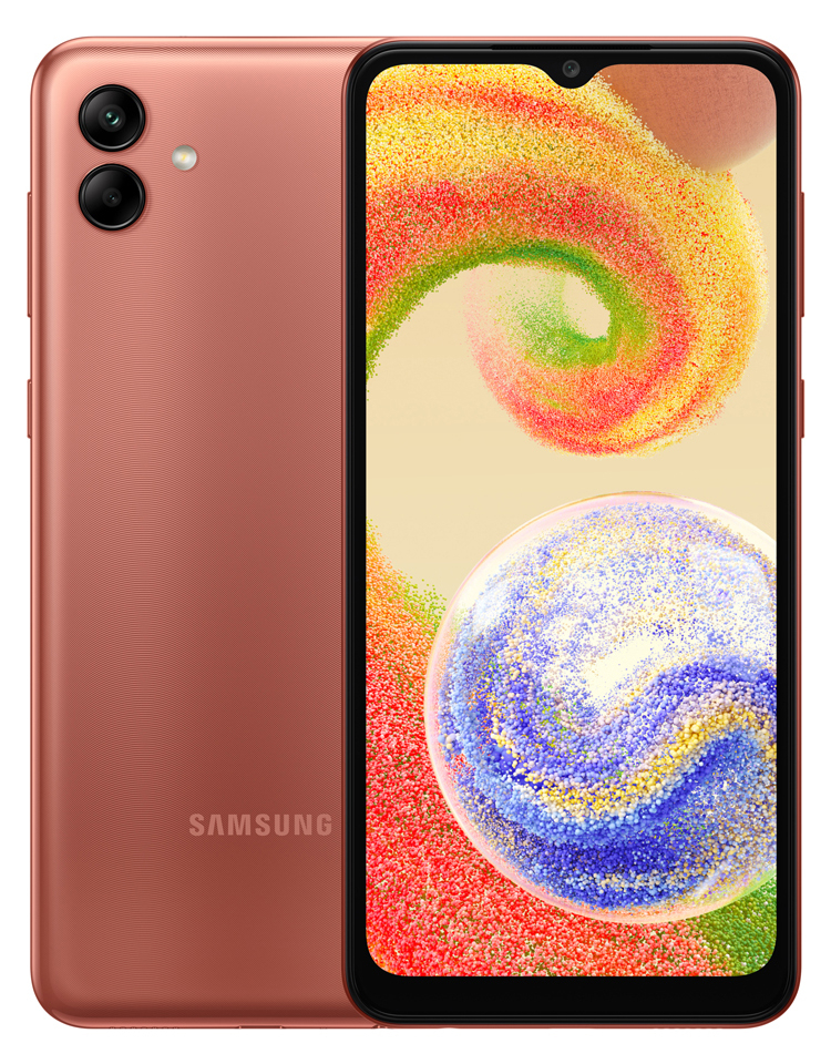 A Samsung anunciou um smartphone Galaxy A04 acessível que executa o sistema operacional Android 12 com um complemento proprietário One UI Core 4.1. O dispositivo será oferecido nas cores preto, branco, cobre e verde escuro.