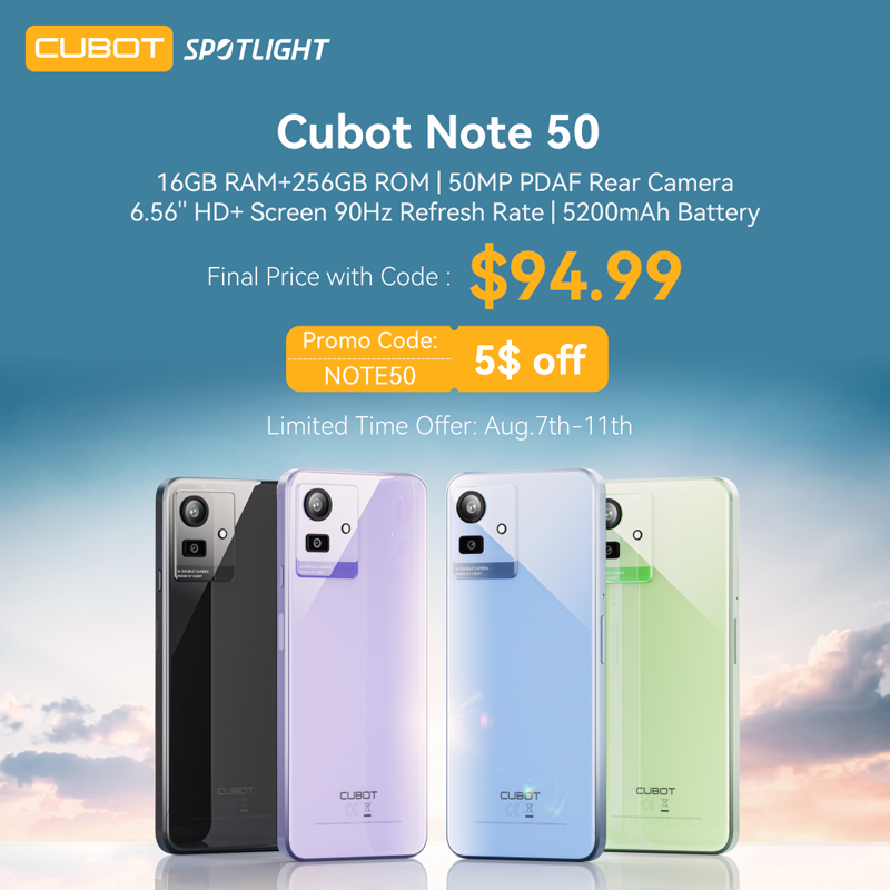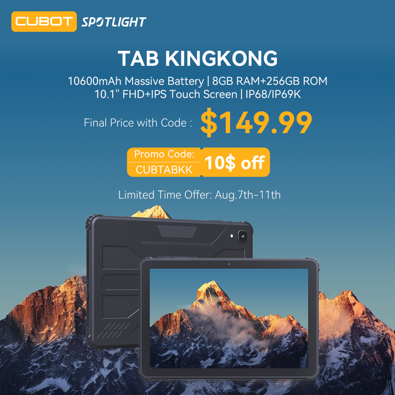 Como parte do evento Cubot Mega Deal, o tablet Cubot TAB KingKong estará disponível por apenas $ 149,99. O desconto é de 36% sobre o preço de varejo de US$ 249,99 (incluindo US$ 10 com o código promocional CUBTABKK). O custo do Cubot KingKong Star, considerando um desconto adicional de $ 10 usando o código promocional KKSTAR10, será de $ 189,99. O preço do Cubot Note 50, considerando um desconto adicional de $ 5 usando o código promocional NOTE50, será de $ 94,99.