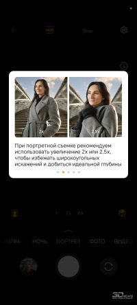 Você pode tirar retratos usando três distâncias focais – base, zoom híbrido 2x e zoom óptico 2,5x. Claro, é neste modo que é melhor usar o disparo com zoom, o que minimizará a distorção óptica, e também é mais conveniente para o smartphone “desenhar” bokeh artificial.