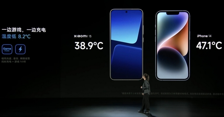 O Xiaomi 13 é construído na mais recente plataforma de chip único Snapdragon 8 Gen 2. Os desenvolvedores cuidaram do resfriamento de alta qualidade, equipando o smartphone com uma câmara de vapor com uma área total de 4642 mm2. De acordo com a Xiaomi, seu novo carro-chefe se compara favoravelmente com o iPhone 14, pois não sofre superaquecimento e não começa a travar sob carga alta prolongada. Complemente o processador com 8 ou 12 GB de RAM LPDDR5X-8533 e 128, 256 ou 512 GB de memória flash UFS 4.0 com velocidades de até 3,5 GB/s. Funciona no smartphone Android 13 com shell MIUI 14.