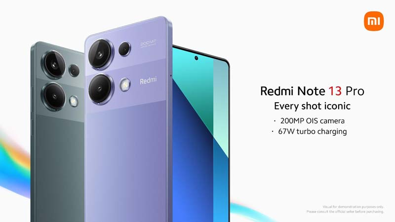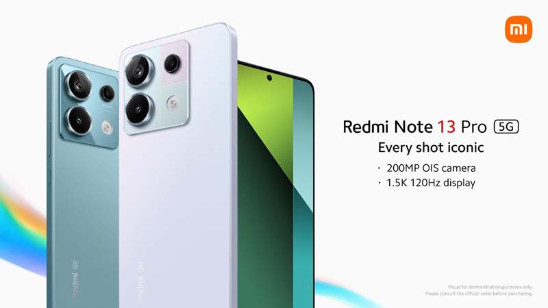 As especificações do smartphone também incluem dois alto-falantes com suporte à tecnologia Dolby Atmos, entrada de áudio de 3,5 mm para fones de ouvido. A bateria de 5100 mAh suporta carregamento rápido de 67 W. Um leitor de impressão digital sob a tela é usado para desbloquear o dispositivo. O smartphone é protegido contra umidade e poeira de acordo com o padrão IP54. O dispositivo roda MIUI 14. Redmi Note 13 Pro 5G está disponível em Midnight Black, Aurora Purple e Ocean Teal.