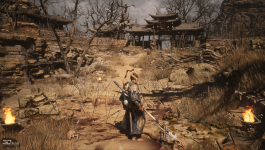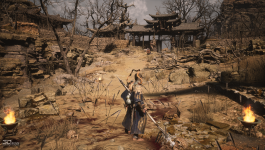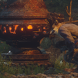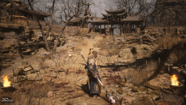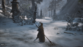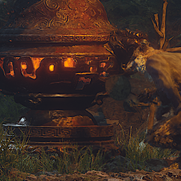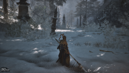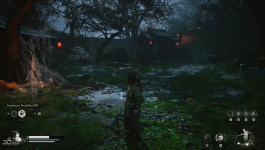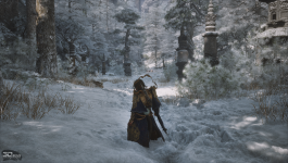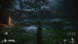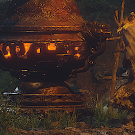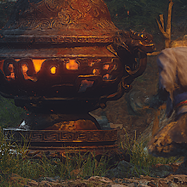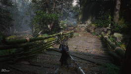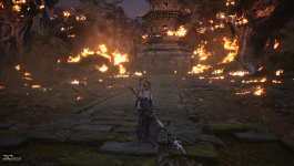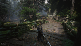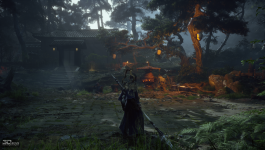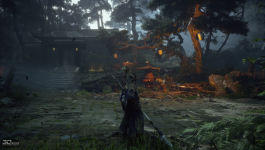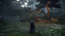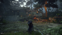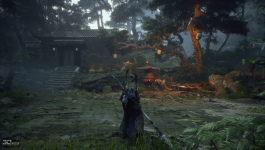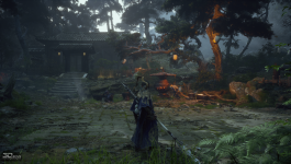 As imagens a seguir enfocam os aspectos gráficos do jogo que tradicionalmente se beneficiam mais com a mudança para o ray tracing. Você pode ver claramente como o rastreamento de caminho transforma espaços fechados que, de outra forma, estariam envoltos em sombras muito profundas ou, inversamente, pareceriam planos. Parece que os designers de ambiente de Black Myth: Wukong tinham este tipo de modelo de renderização em mente desde o início, com iluminação global via Lumen como mecanismo de backup. O rastreamento de caminho permite que objetos pequenos projetem sombras detalhadas que não podem ser aproximadas por algoritmos padrão de Oclusão de Ambiente. A renderização dos reflexos na superfície da água ocorre em resolução total. Além disso, o rastreamento de caminho simula de forma realista a refração e a refração da luz na coluna de água.