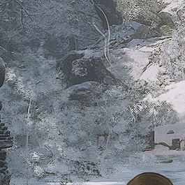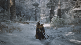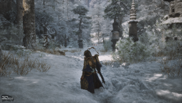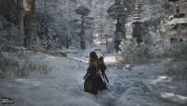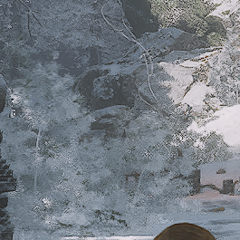 Um problema separado foi o filtro de clareza agressivo, que não pode ser ajustado nem desativado (pelo menos por meios padrão; já existem modificações de terceiros). Por causa disso, a imagem de Black Myth: Wukong parece granulada, artefatos de aumento de escala vêm à tona e a grade de pontilhamento TSR é claramente visível nas árvores da floresta nevada, que, por sua vez, é destacada por qualquer algoritmo de escala. A única salvação desse flagelo, que, infelizmente, está disponível apenas para proprietários de modelos NVIDIA mais antigos, é o anti-aliasing DLAA em tela cheia, ao qual você terá que adicionar geração de quadros para manter uma taxa de quadros confortável.