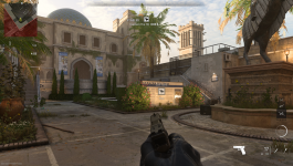 No entanto, deve-se admitir que um filtro de clareza DLSS agressivo nem sempre é benéfico – por exemplo, ao renderizar texturas complexas com um canal alfa (grama, copas de árvores). O DLSS e o XeSS geram os mesmos artefatos menores: halos brilhantes e pontos nas bordas da geometria, mas o XeSS tem outro problema familiar de implementações DLSS anteriores: perda parcial de contraste em grandes áreas da imagem. Por exemplo, as bordas das folhas de palmeira na segunda captura de tela estão desaparecendo no céu.