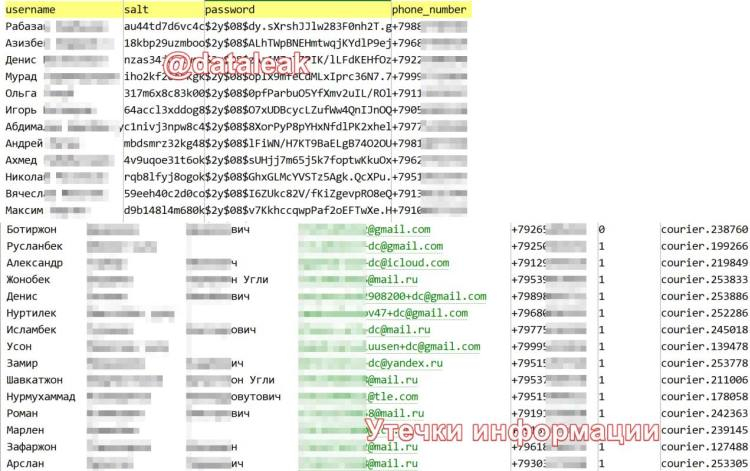De acordo com os dados disponíveis, a base de dados de funcionários do Yandex.Food contém 700.022 linhas com os nomes completos dos correios, senhas com hash e números de telefone (um total de 585.298 números). O arquivo do Delivery Club contém 521.500 linhas com os nomes completos dos correios, números de telefone (132.742 números) e endereços de e-mail (131.695 endereços).