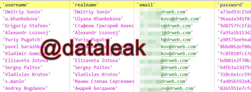 Como confirmação, os hackers forneceram vários despejos de banco de dados de recursos internos, como ldap.dev.drweb.com, vxcube.drweb.com, bugs.drweb.com, antitheft.drweb.com, rt.drweb.com, etc. De acordo com informações dos lixões, os dados neles contidos são atuais em 17 de setembro de 2024.