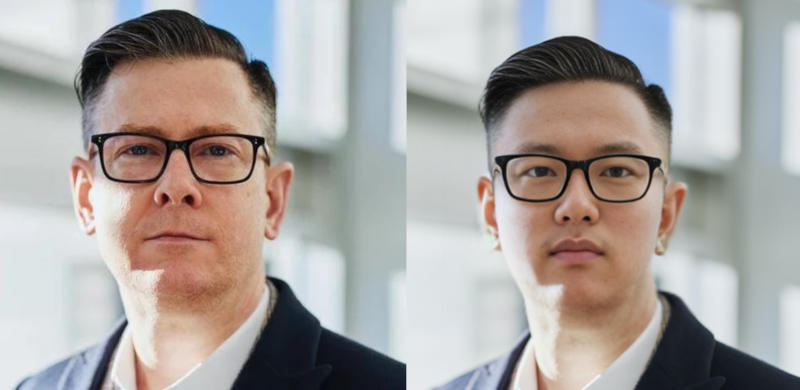 Uma foto de um banco de fotos (à esquerda) e uma falsificação criada por IA (à direita). Fonte da imagem: blog.knowbe4.com