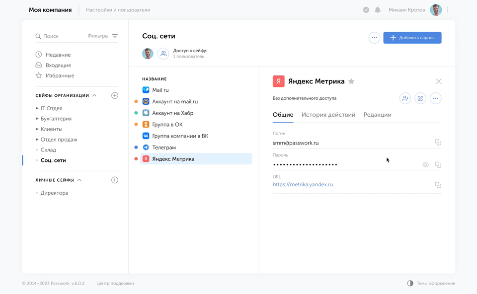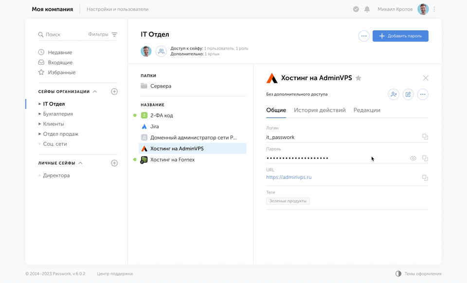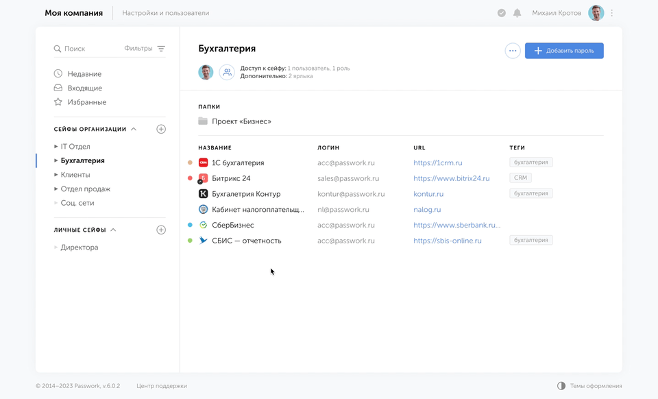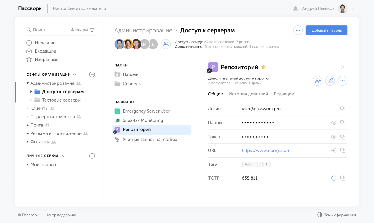 O gerenciador de senhas para negócios “Passwork” dispensa apresentações (veja nossa análise do programa). O produto remonta a 2014 e durante o seu desenvolvimento conseguiu assumir uma posição forte no mercado de software e ganhar a confiança de muitas empresas, incluindo Lanit, Transneft, X5 Retail Group, PIK Group, Channel One, Promsvyazbank ”, VTB e muitos outras organizações conhecidas. A solução está em demanda no ambiente corporativo e, portanto, está sendo ativamente aprimorada pelos desenvolvedores. Uma evidência clara disso é o lançamento do Passwork 6.0, uma grande atualização do gerenciador de senhas.