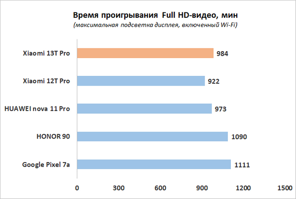 O Xiaomi 13T Pro possui uma bateria com capacidade de 19 Wh (5000 mAh, 3,8 V). Tudo está como esperado – nem a plataforma mais quente e “fina” permite manter a carga durante todo o dia, mesmo sob carga pesada. Os vazamentos de carga no modo standby são mínimos e não há necessidade de ter medo da tela de 144 Hz – como lembramos, a frequência máxima quase nunca é atingida.